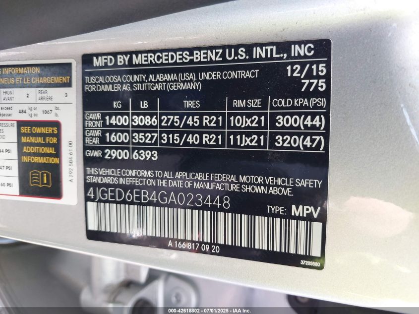 2016 MERCEDES-BENZ GLE-CLASS | 4JGED6EB4GA023448