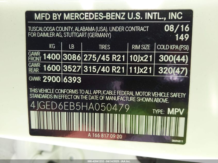 2017 MERCEDES-BENZ GLE-CLASS | 4JGED6EB5HA050479