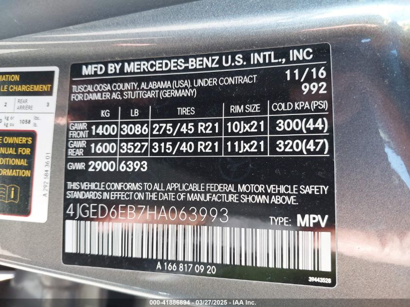 2017 MERCEDES-BENZ GLE-CLASS | 4JGED6EB7HA063993