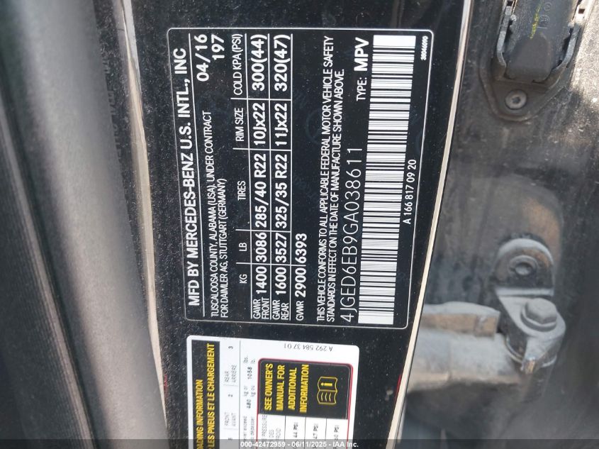 2016 MERCEDES-BENZ GLE-CLASS | 4JGED6EB9GA038611