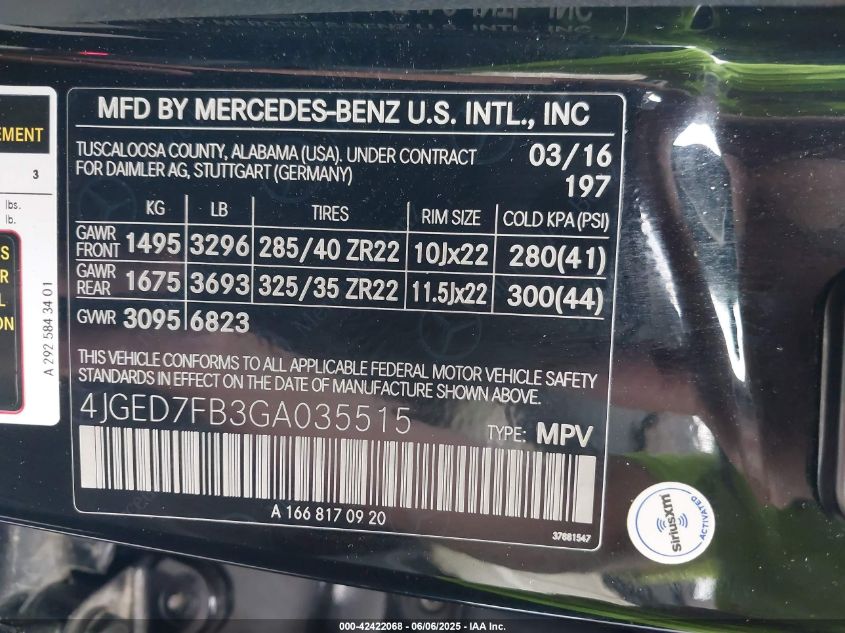 2016 MERCEDES-BENZ GLE-CLASS | 4JGED7FB3GA035515
