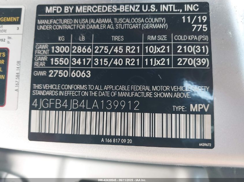 2020 MERCEDES-BENZ GLE-CLASS | 4JGFB4JB4LA139912