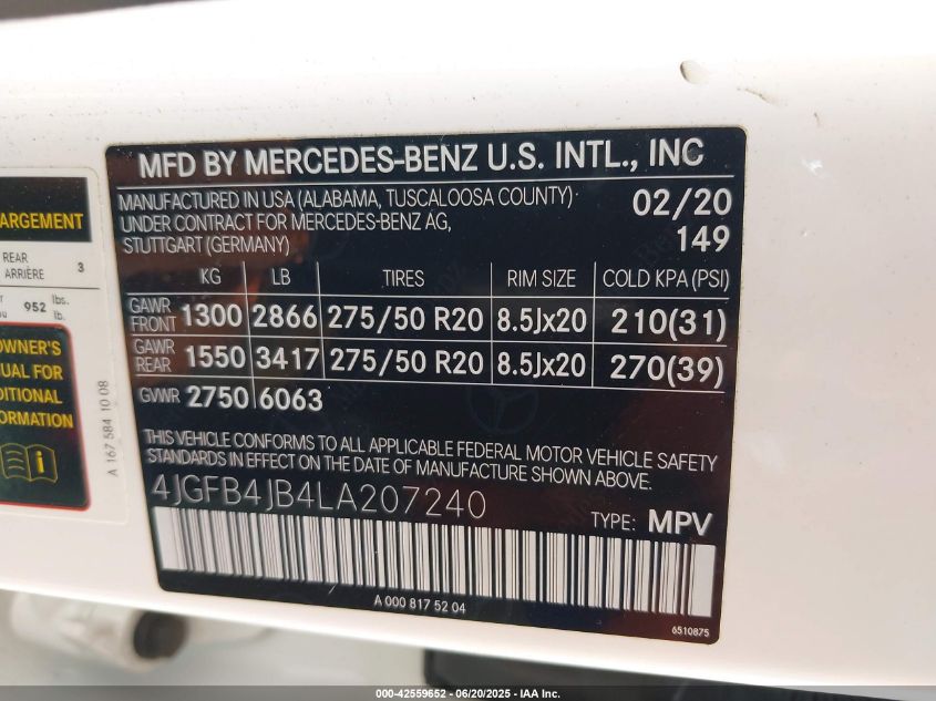 2020 MERCEDES-BENZ GLE-CLASS | 4JGFB4JB4LA207240