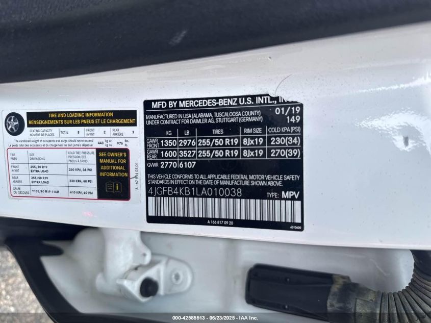 2020 MERCEDES-BENZ GLE-CLASS | 4JGFB4KB1LA010038