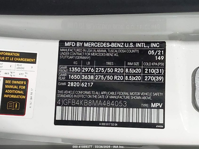 2021 MERCEDES-BENZ GLE-CLASS | 4JGFB4KB8MA484053