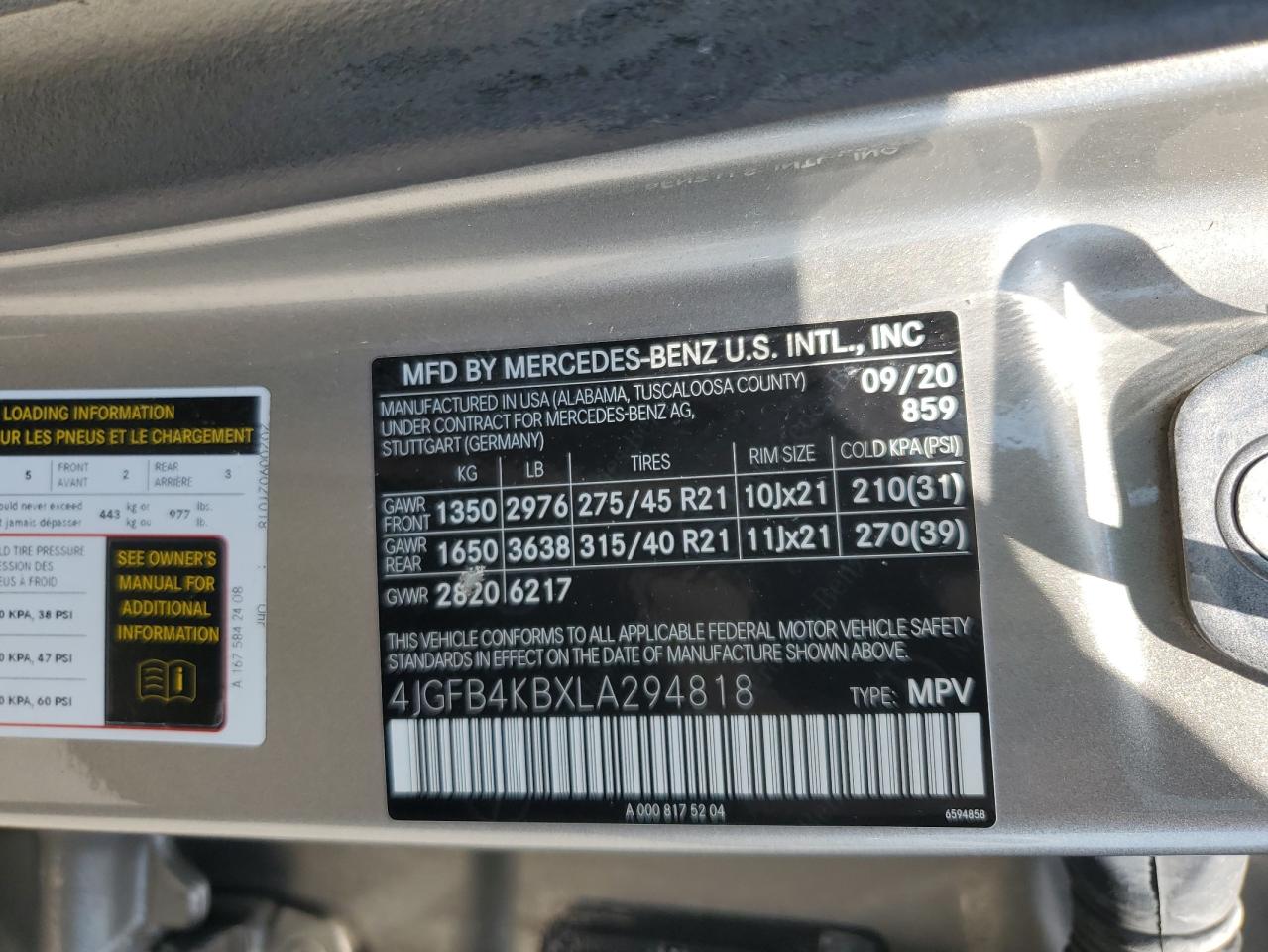2020 MERCEDES-BENZ GLE-CLASS | 4JGFB4KBXLA294818
