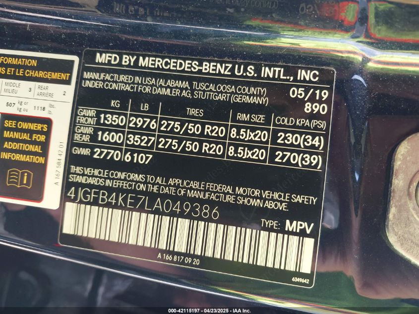 2020 MERCEDES-BENZ GLE-CLASS | 4JGFB4KE7LA049386