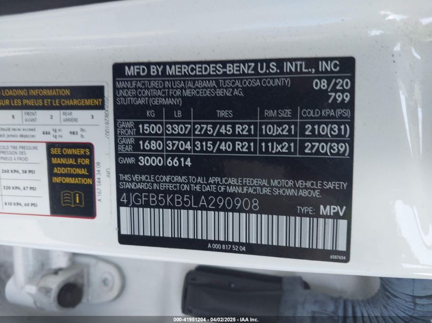 2020 MERCEDES-BENZ GLE-CLASS | 4JGFB5KB5LA290908