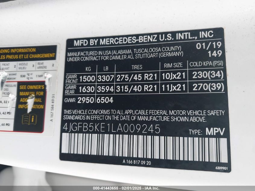 2020 MERCEDES-BENZ GLE-CLASS | 4JGFB5KE1LA009245
