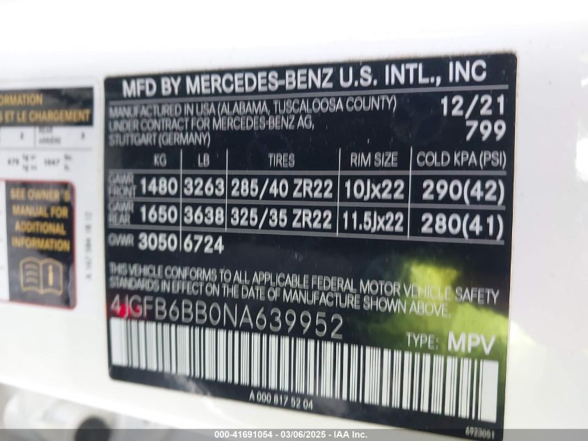 2022 MERCEDES-BENZ GLE-CLASS | 4JGFB6BB0NA639952