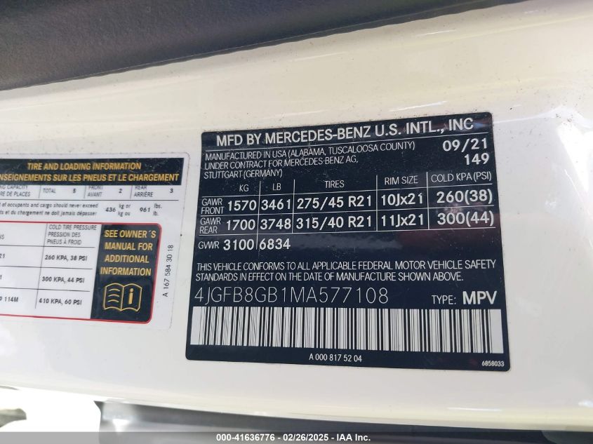 2021 MERCEDES-BENZ GLE-CLASS | 4JGFB8GB1MA577108