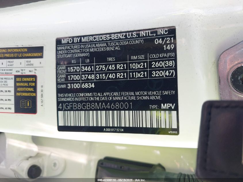 2021 MERCEDES-BENZ GLE-CLASS | 4JGFB8GB8MA468001