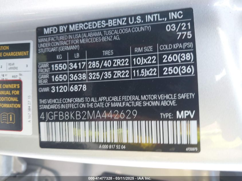 2021 MERCEDES-BENZ GLE-CLASS | 4JGFB8KB2MA442629