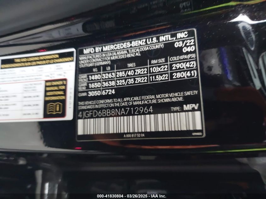 2022 MERCEDES-BENZ GLE-CLASS | 4JGFD6BB8NA712964