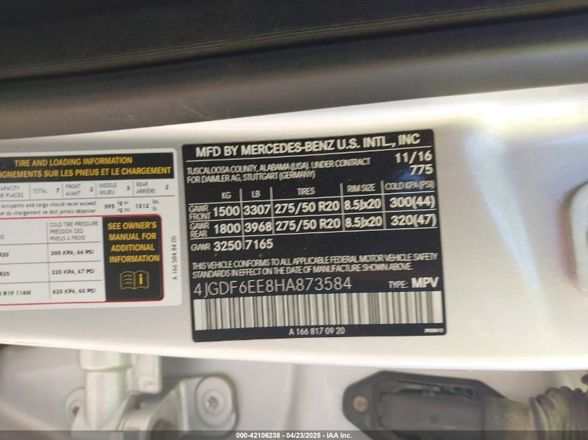 2017 MERCEDES-BENZ GLS-CLASS | 4JGDF6EE8HA873584