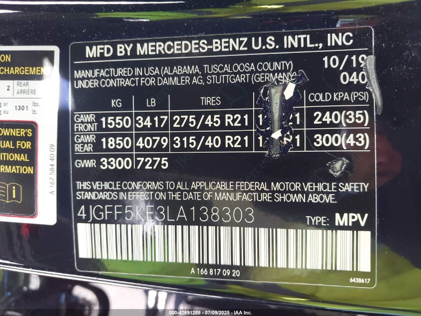 2020 MERCEDES-BENZ GLS-CLASS | 4JGFF5KE3LA138303