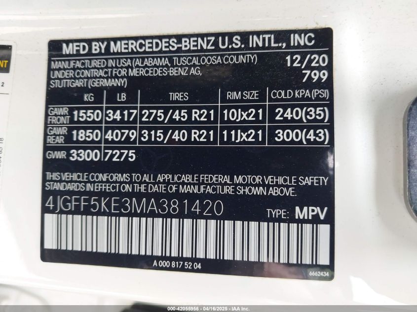 2021 MERCEDES-BENZ GLS-CLASS | 4JGFF5KE3MA381420