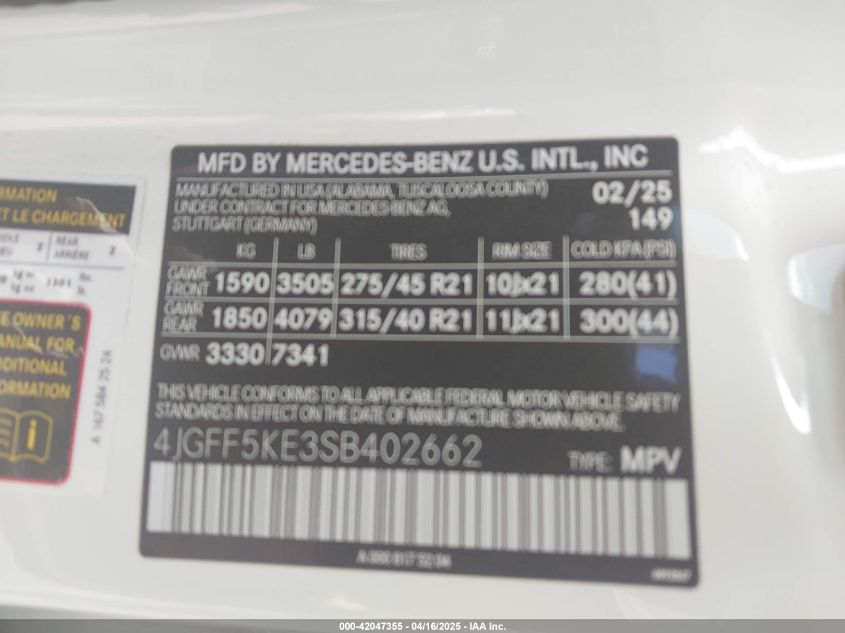 2025 MERCEDES-BENZ GLS-CLASS | 4JGFF5KE3SB402662