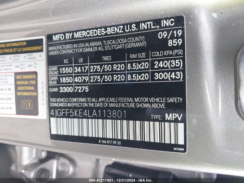 2020 MERCEDES-BENZ GLS-CLASS | 4JGFF5KE4LA113801