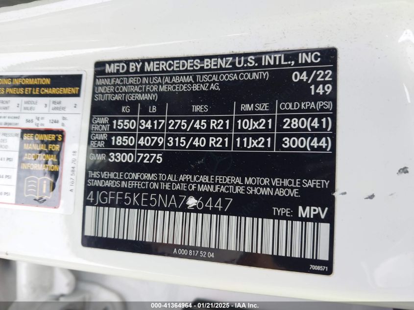 2022 MERCEDES-BENZ GLS-CLASS | 4JGFF5KE5NA726447