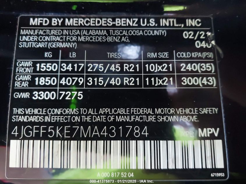 2021 MERCEDES-BENZ GLS-CLASS | 4JGFF5KE7MA431784