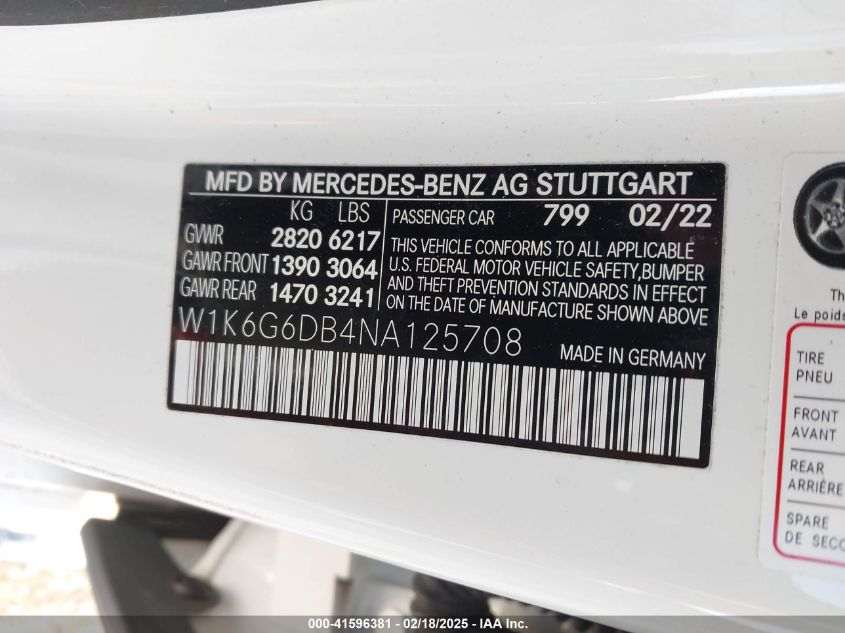 2022 MERCEDES-BENZ S-CLASS | W1K6G6DB4NA125708