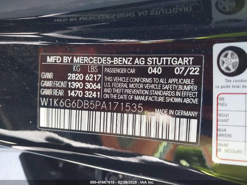 2023 MERCEDES-BENZ S-CLASS | W1K6G6DB5PA171535