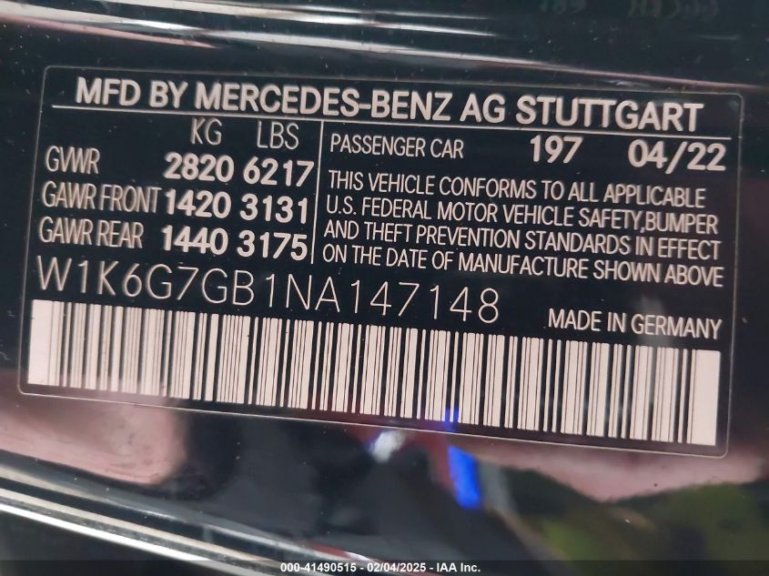 2022 MERCEDES-BENZ S-CLASS | W1K6G7GB1NA147148