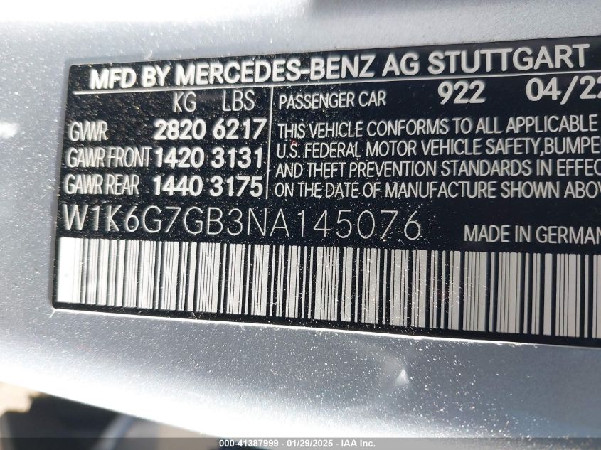 2022 MERCEDES-BENZ S-CLASS | W1K6G7GB3NA145076