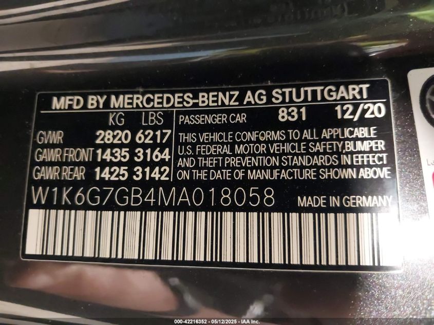2021 MERCEDES-BENZ S-CLASS | W1K6G7GB4MA018058