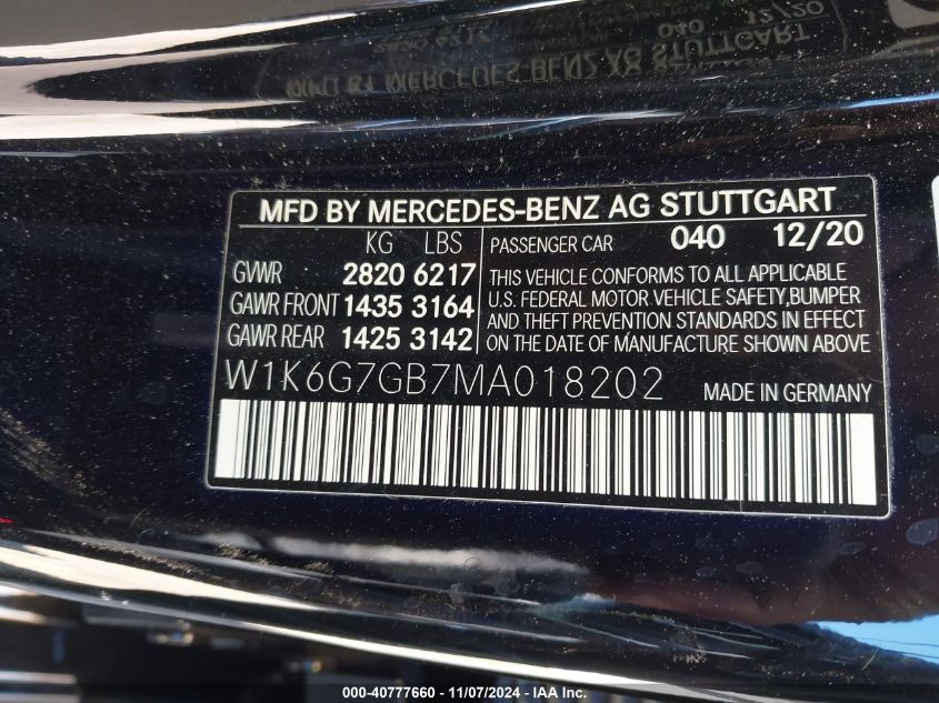 2021 MERCEDES-BENZ S-CLASS | W1K6G7GB7MA018202