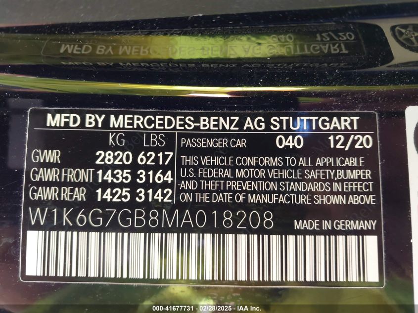 2021 MERCEDES-BENZ S-CLASS | W1K6G7GB8MA018208