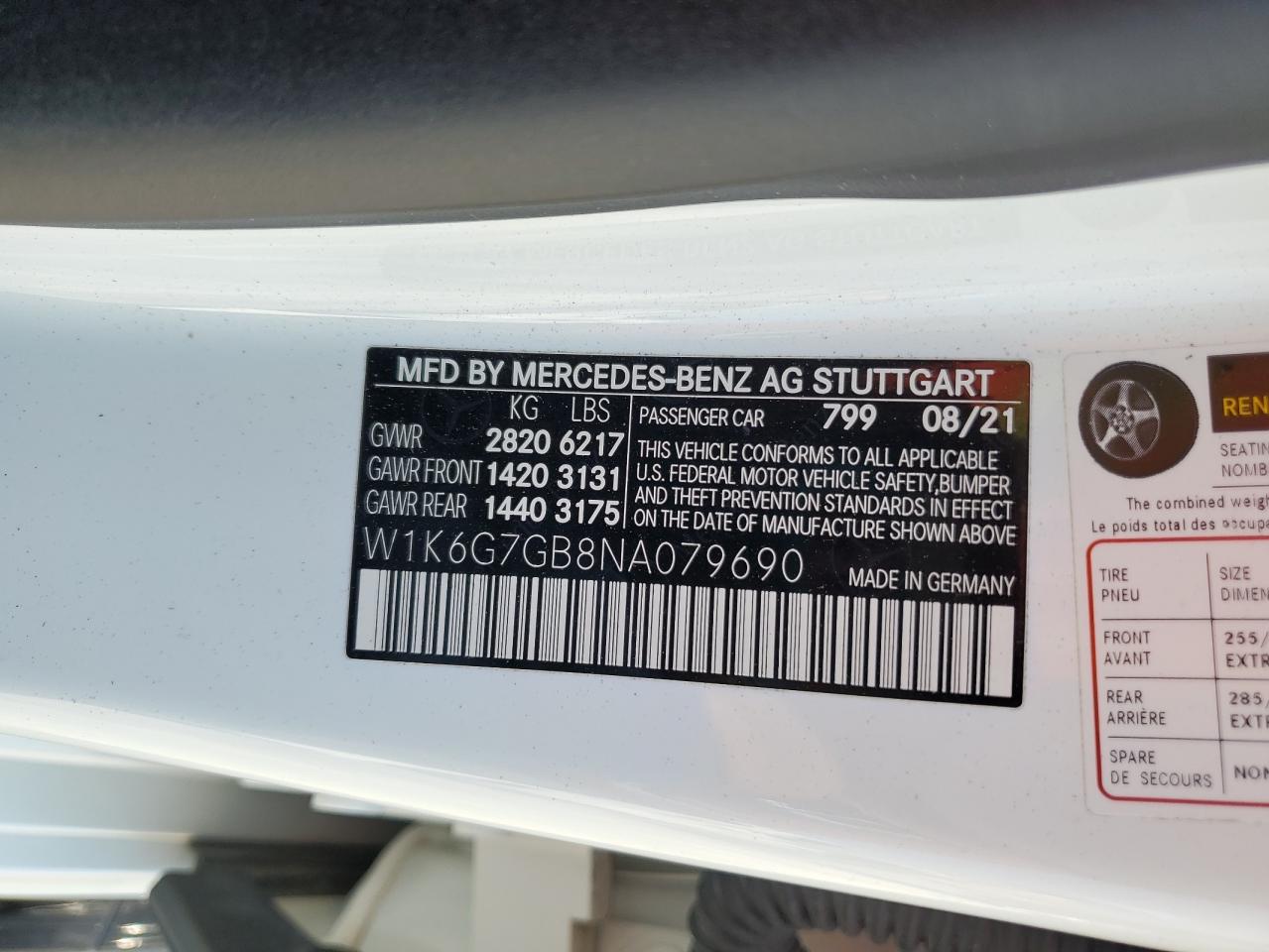 2022 MERCEDES-BENZ S-CLASS | W1K6G7GB8NA079690