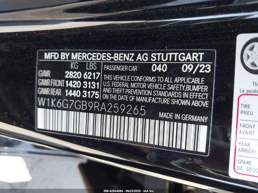 2024 MERCEDES-BENZ S-CLASS | W1K6G7GB9RA259265