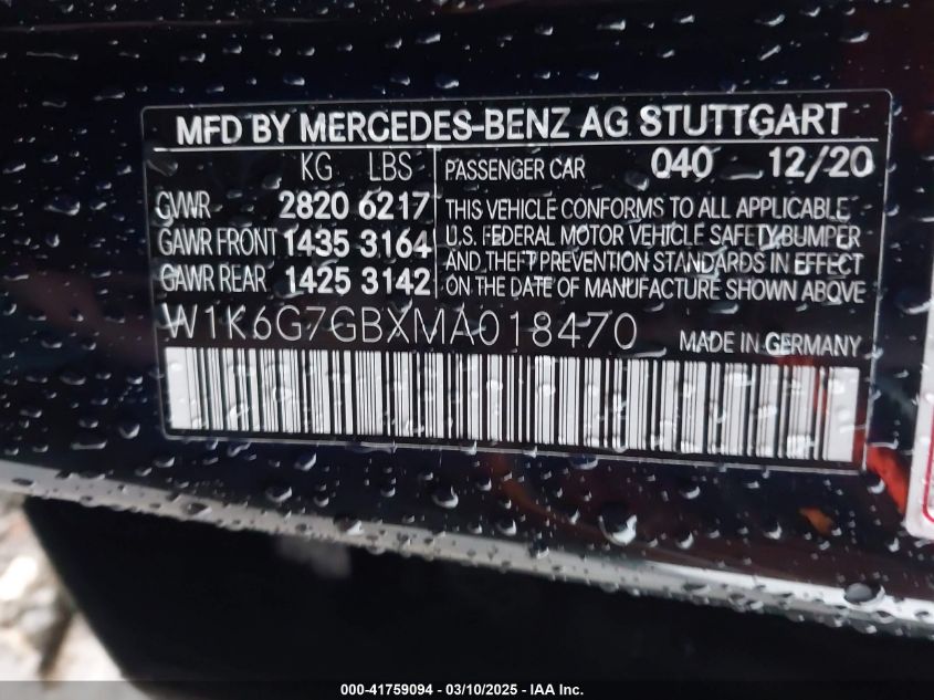 2021 MERCEDES-BENZ S-CLASS | W1K6G7GBXMA018470
