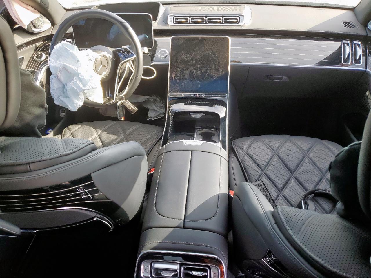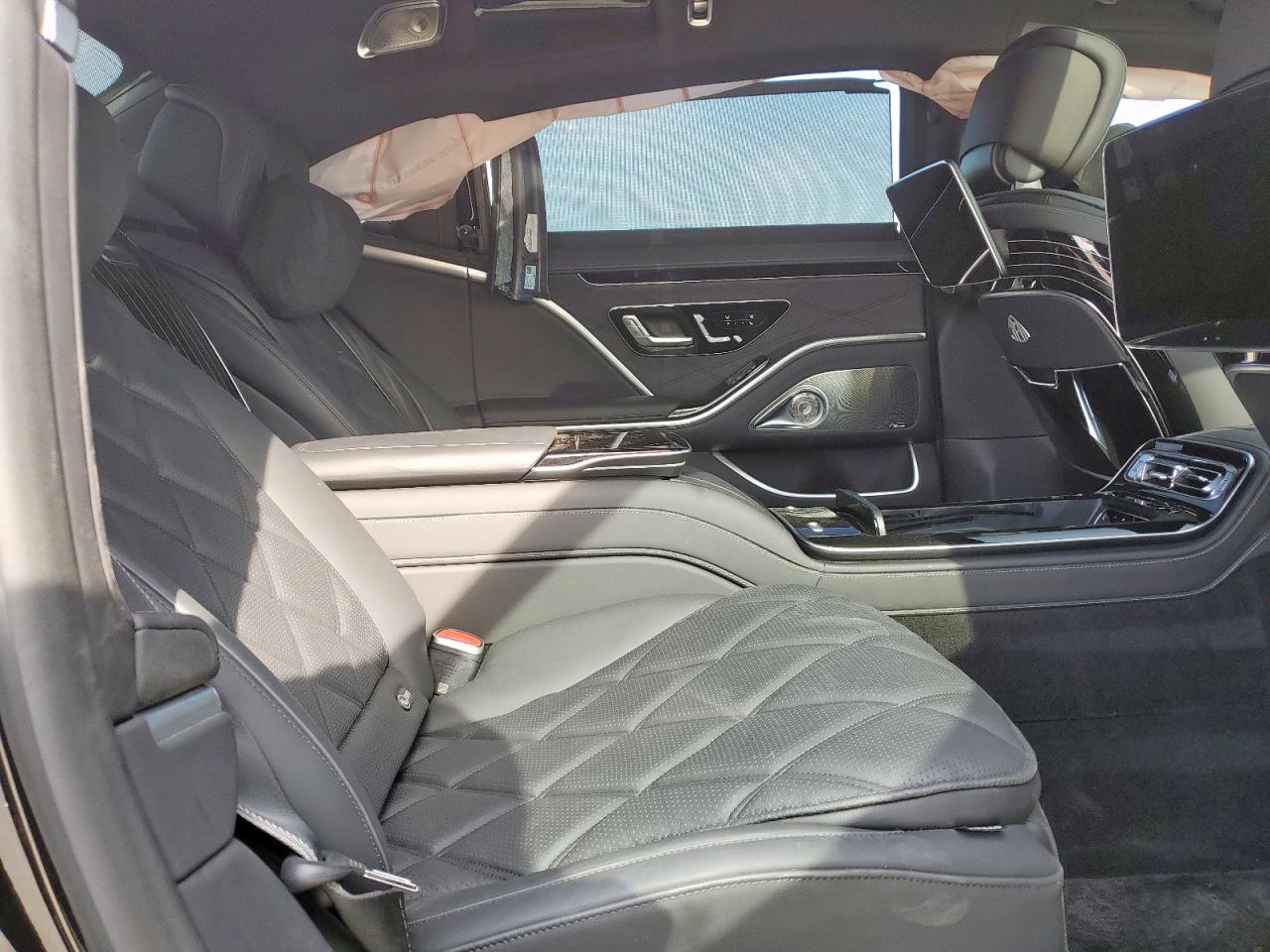The W223 features a multi-screen dashboard with a 12.3” 3D digital cluster and 12.8” OLED center touchscreen. Materials range from Artico leatherette (base Europe) to full Nappa leather, with ambient lighting in 64 or 253 colors. Maybach cabins add rear executive reclining seats, massage programs, Maybach-exclusive leather quilting, piano lacquer wood trim, and rose gold detailing. Pullman interiors are tailored to diplomatic transport, with partitioned glass, conference seating, rear command panels, and hand-finished embroidery.