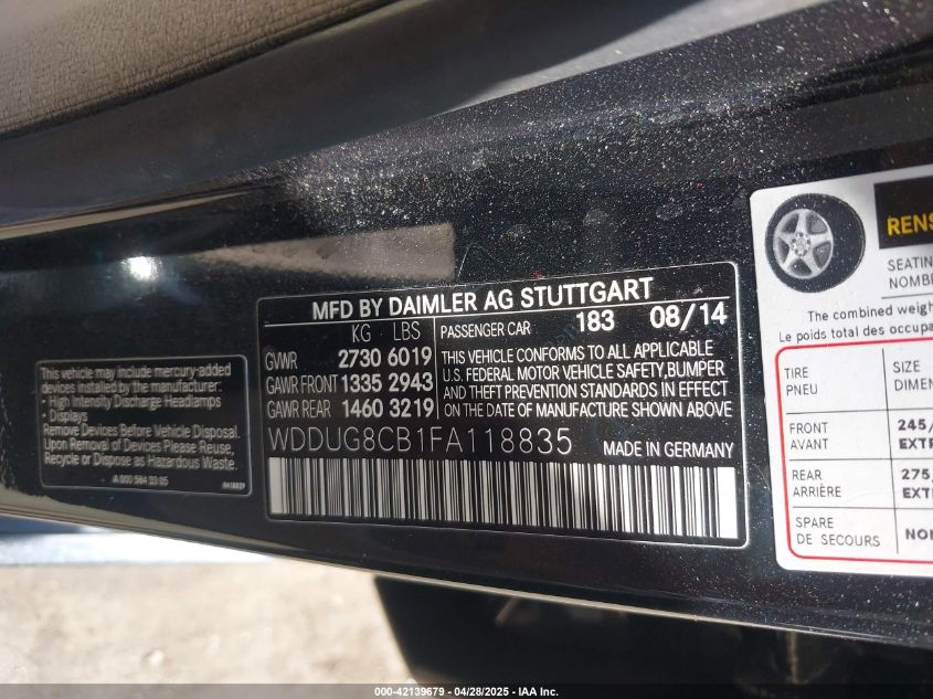 2015 MERCEDES-BENZ S-CLASS | WDDUG8CB1FA118835