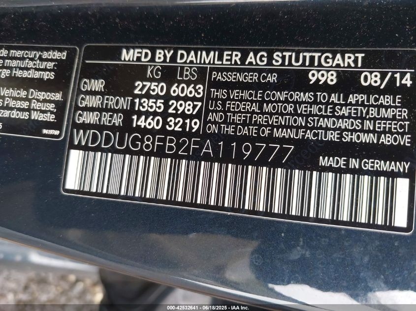 2015 MERCEDES-BENZ S-CLASS | WDDUG8FB2FA119777