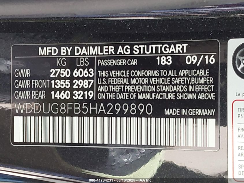 2017 MERCEDES-BENZ S-CLASS | WDDUG8FB5HA299890