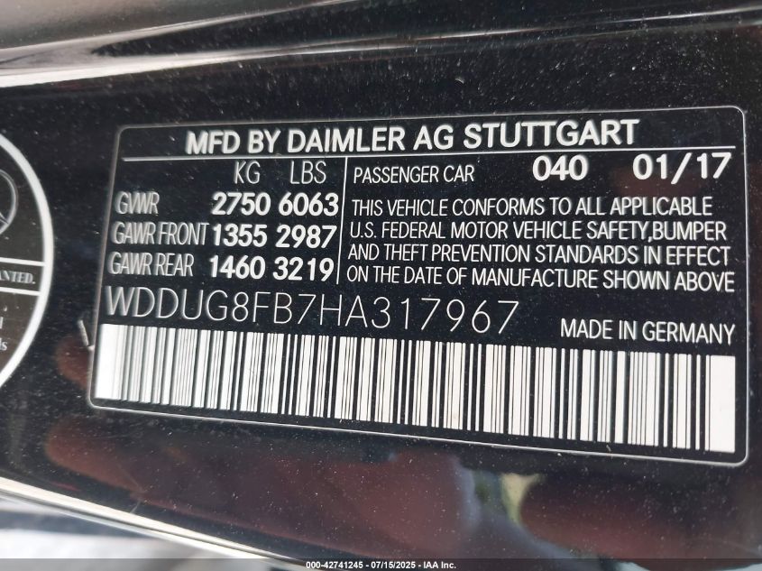 2017 MERCEDES-BENZ S-CLASS | WDDUG8FB7HA317967