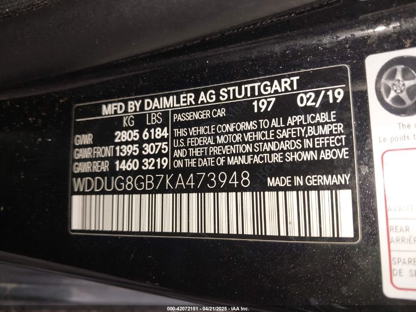 2019 MERCEDES-BENZ S-CLASS | WDDUG8GB7KA473948