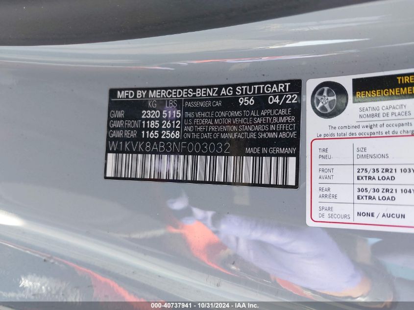 2022 MERCEDES-BENZ SL-CLASS | W1KVK8AB3NF003032