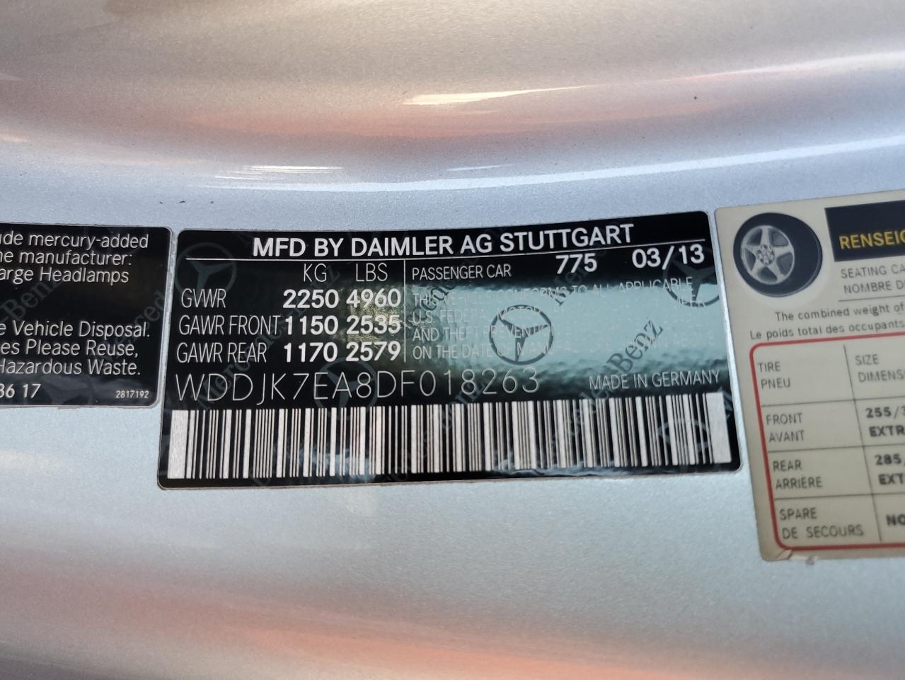 2013 MERCEDES-BENZ SL-CLASS | WDDJK7EA8DF018263