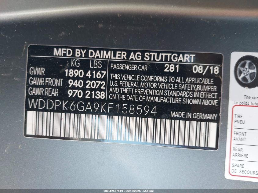 2019 MERCEDES-BENZ SLC-CLASS | WDDPK6GA9KF158594