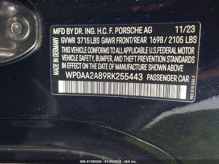 2024 PORSCHE 718 CAYMAN | WP0AA2A89RK255443