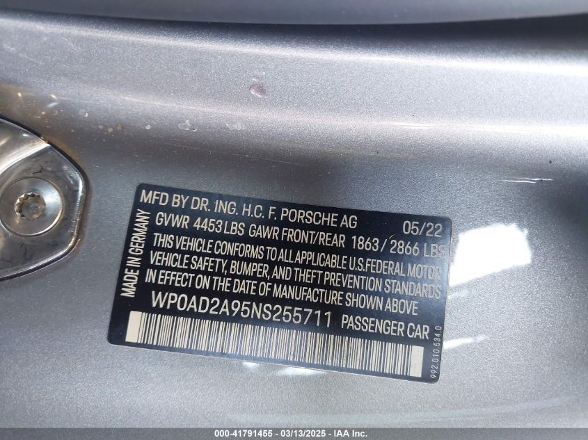2022 PORSCHE 911 | WP0AD2A95NS255711