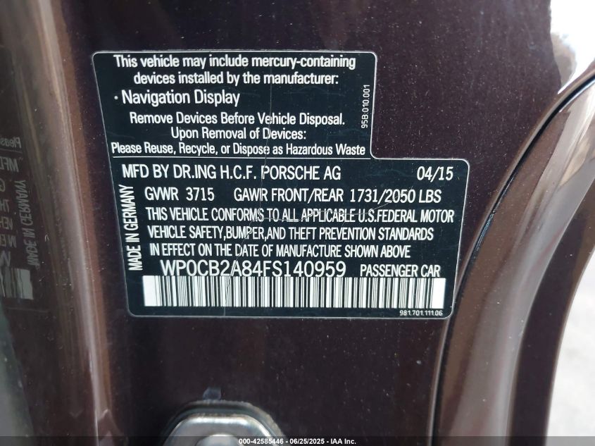 2015 PORSCHE BOXSTER | WP0CB2A84FS140959