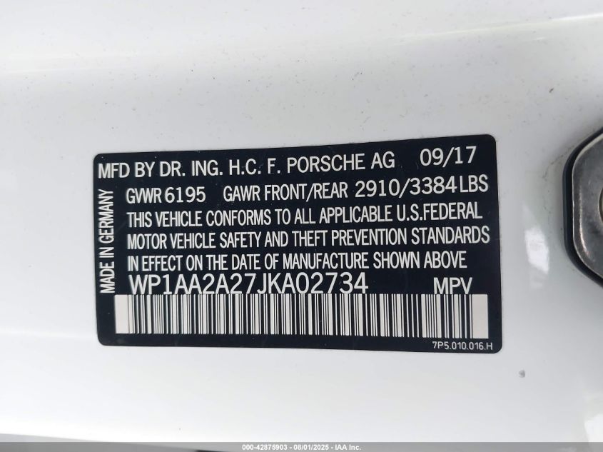 2018 PORSCHE CAYENNE | WP1AA2A27JKA02734