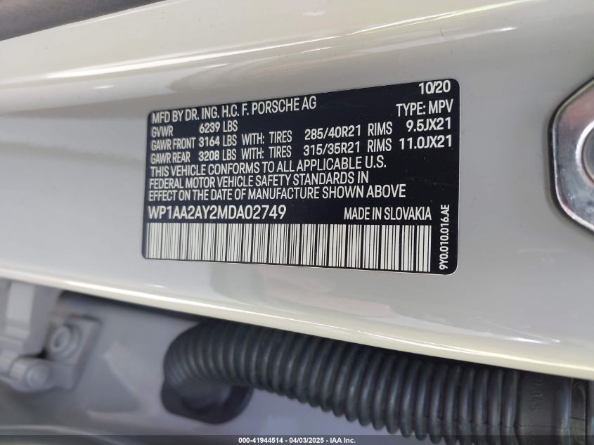 2021 PORSCHE CAYENNE | WP1AA2AY2MDA02749