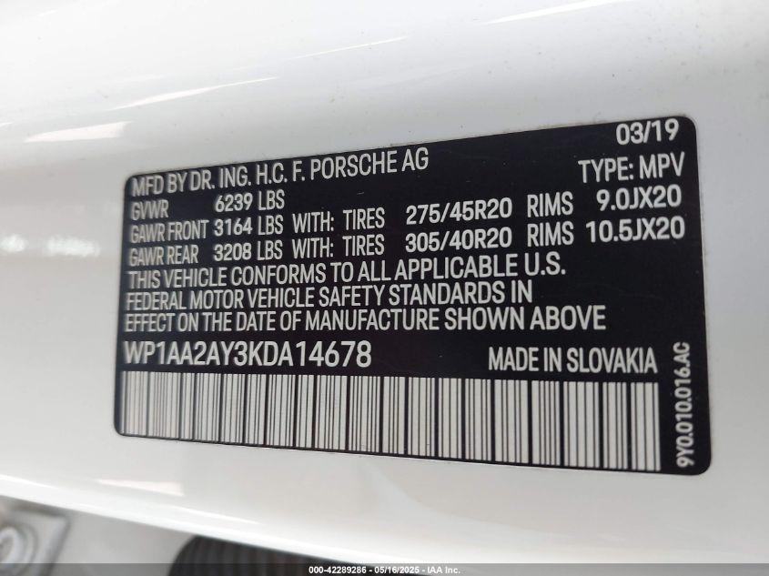 2019 PORSCHE CAYENNE | WP1AA2AY3KDA14678